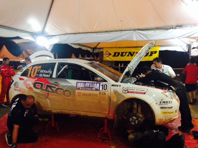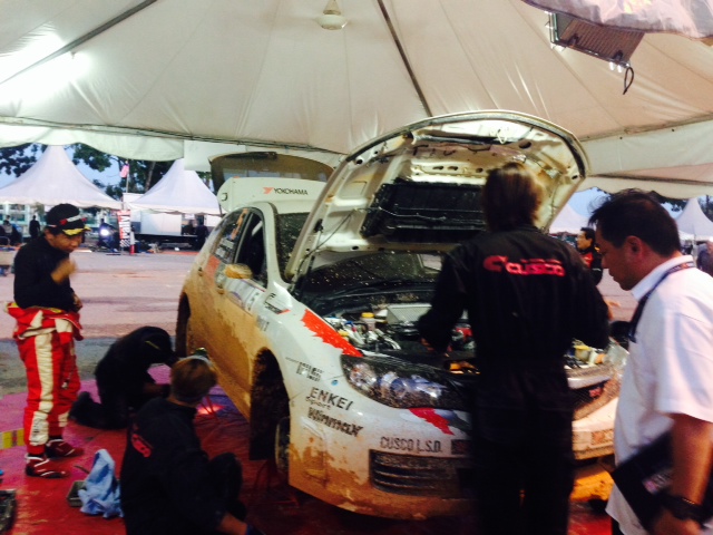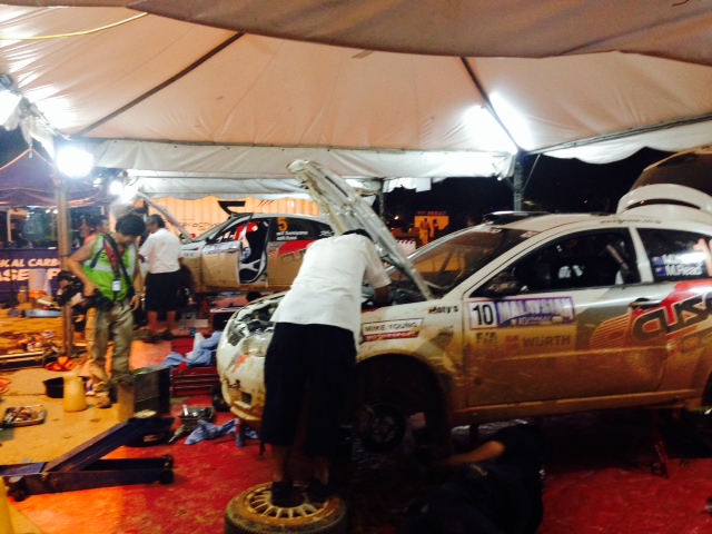 サトリアNEOのマイケル ヤングも二輪駆動部門トップを快走中!しっかりメンテして、明日のステージへ、つなげます。