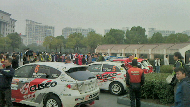 ラリーショーはビルに囲まれたロンユウ市内の公園で行われています。
