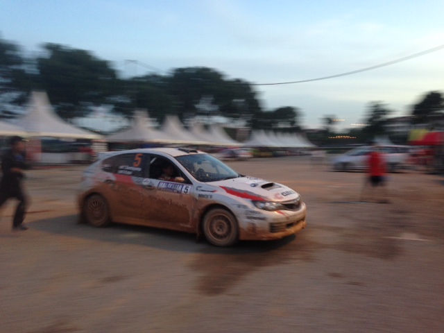 ラリーマレーシアのステージ1炭山/加勢組のWRXでのSTIは、無事クリアー!SS8も総合2位で、このステージ総合2位!この後、サービスを受け、明日に備えます。