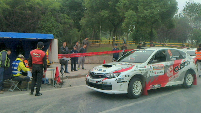 カーナンバーは6ですが出走順はS2000勢につづく3番手走行になる炭山選手です。セレモニアルスタートからSS1のスーパーSSに向かいます。