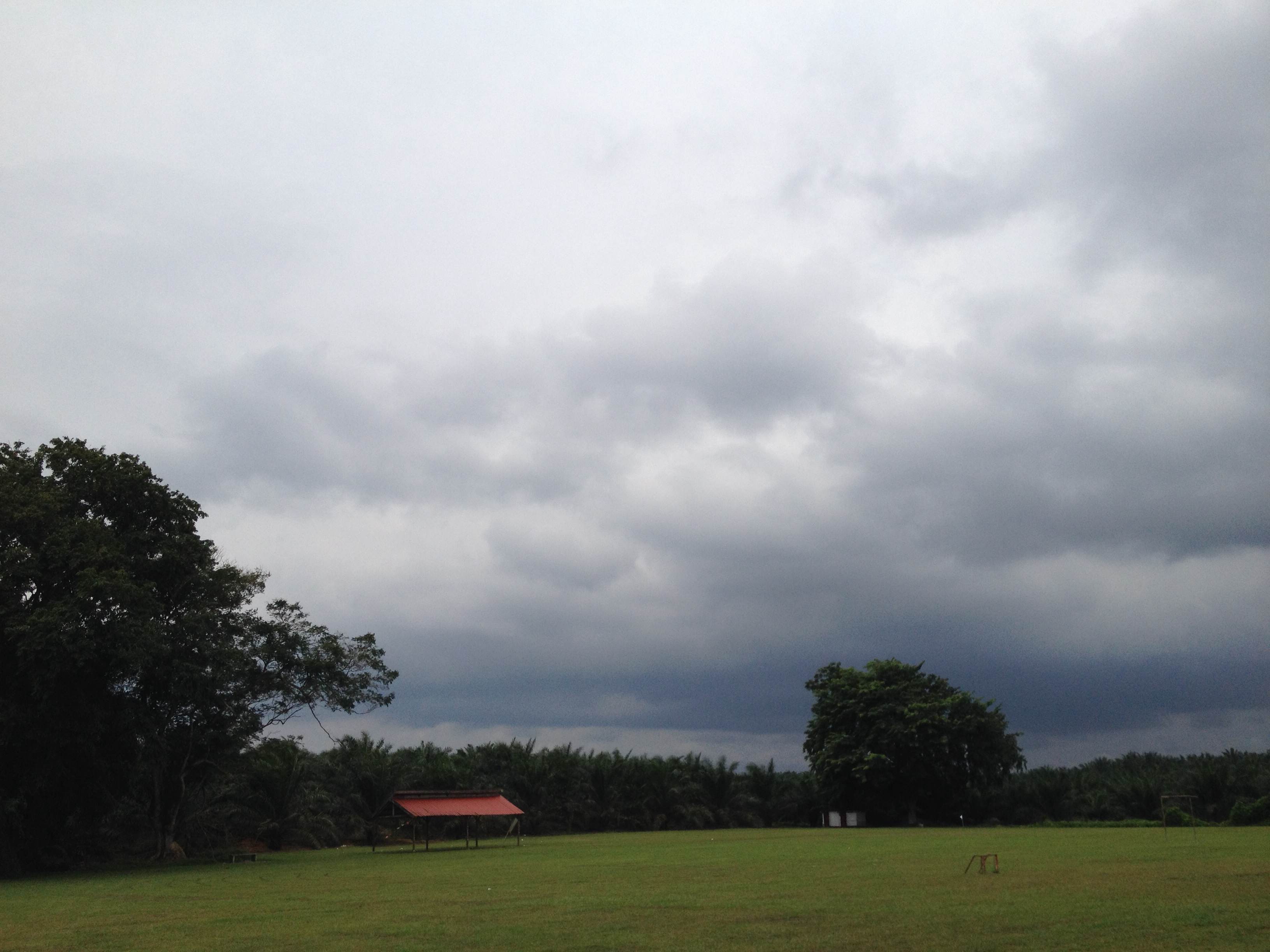 上空を流れる雲と地上に吹く風の向きが逆になるとスコールが近いそうです。まさに一雨来そうです。