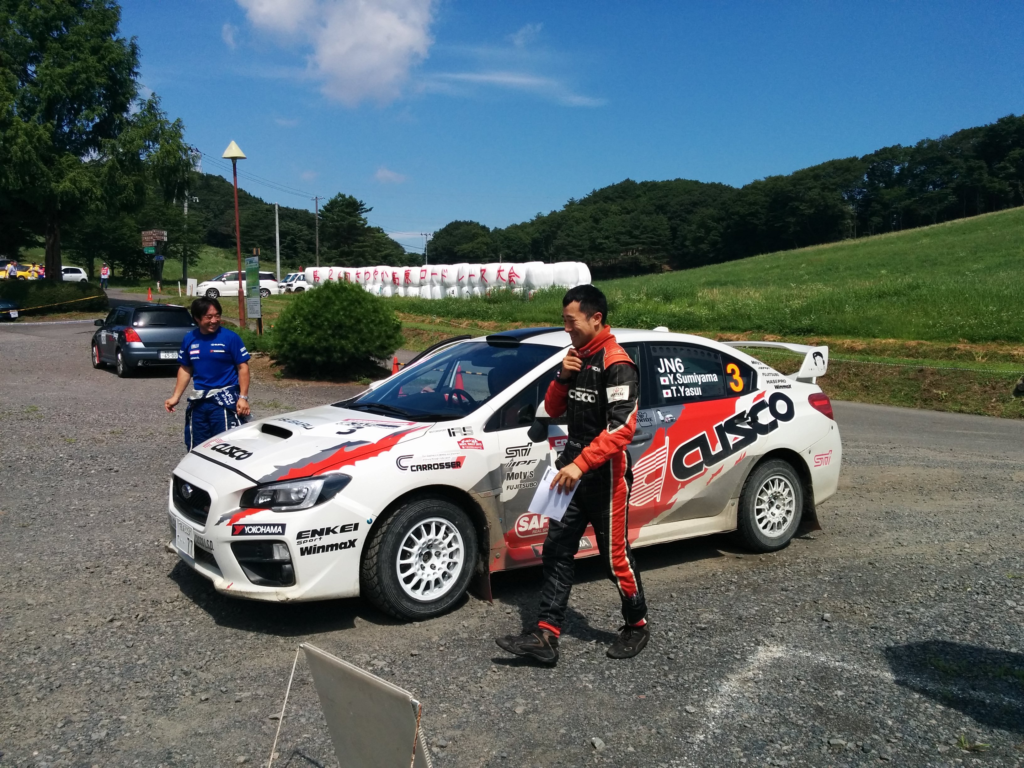 3ステージを終了し、スタート前に8.2秒あった3位奴田原選手との差を3.5秒までつめた炭山/保井組!あと4ステージで逆転を狙います!