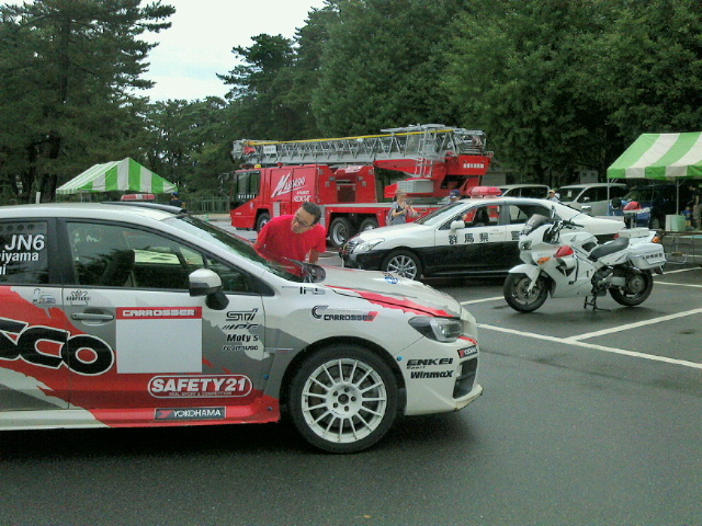 群馬県前橋市の敷島公園 バラ園傍で開催中の、夏休み子供イベント、「ホリデーイン前橋」で、全日本ラリー モントレーを翌週に控えた炭山選手の CUSCO WRX-STIを展示中です。