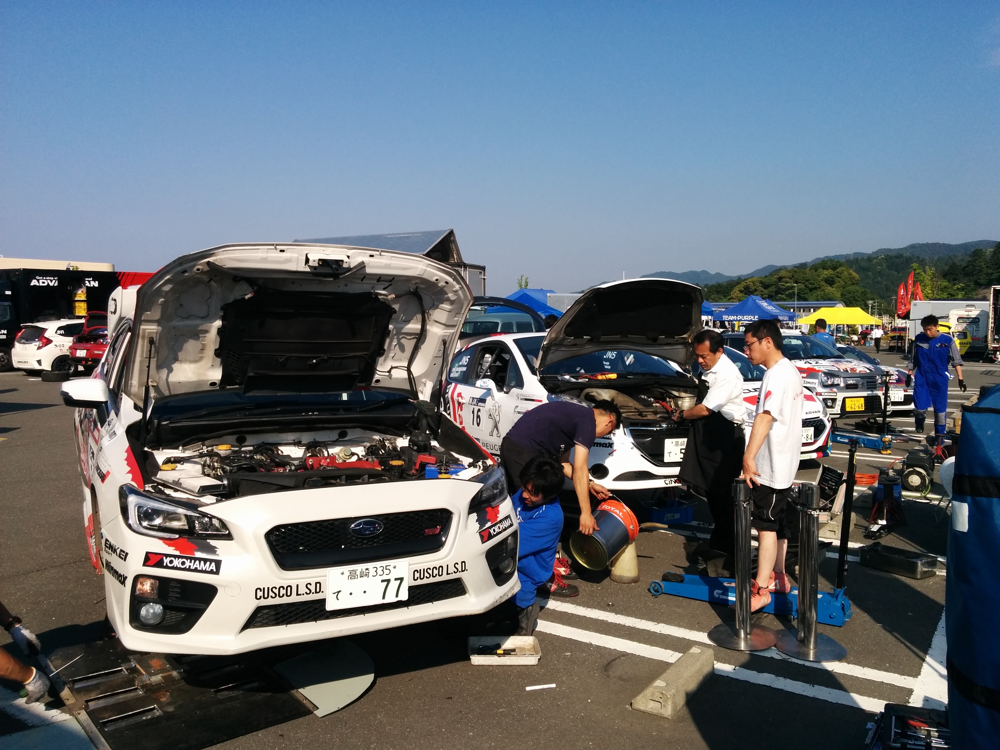 若狭ラリー、CUSCOチームはレッキ、車検ともに無事終了。只今最終メンテナンス中。今年の全日本ラリーは今のところ雨しらずで、ずっと晴れが続いています。ステージはドライでどこも良好なターマックですが、場所によってダスティだったりウェットだったりするので注意が必要です。明日はAM8:00スタート、応援よろしくお願いします!