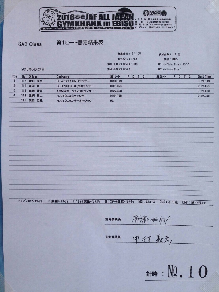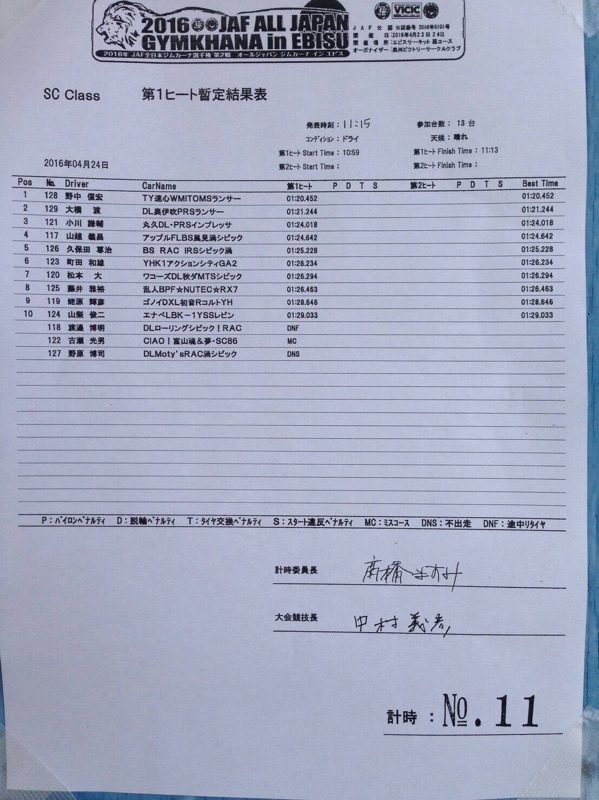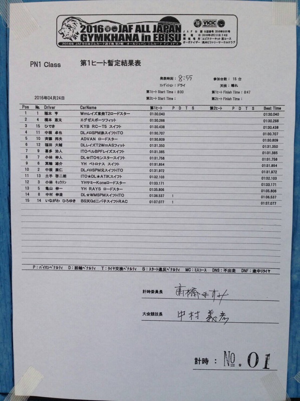 > 2016全日本ジムカーナ第2戦 エビス決勝第1ヒート暫定結果