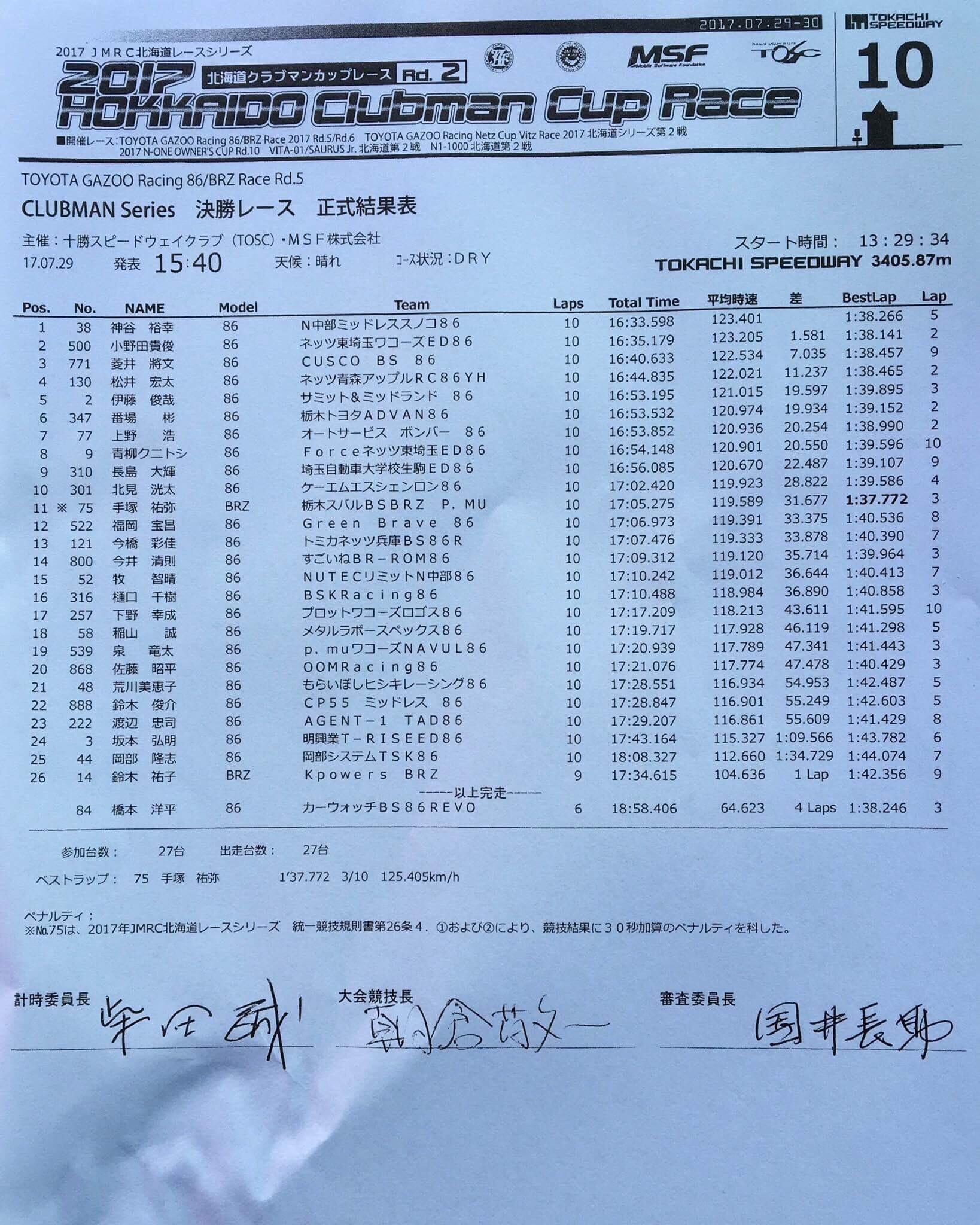 Rd.5十勝、正式結果。明日引き続き第6戦開催です!