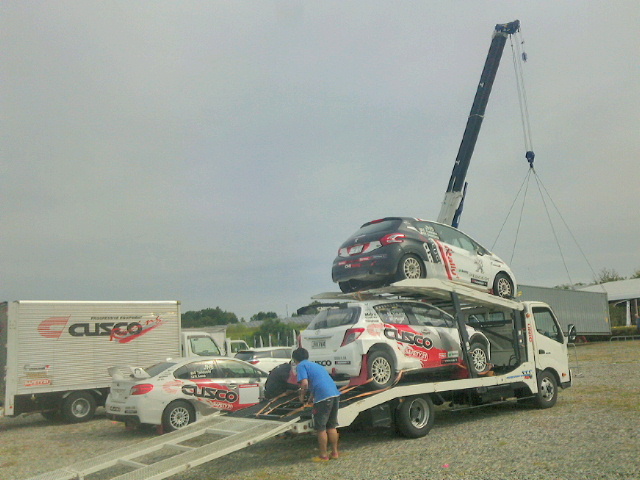 群馬から陸送してきたヴィッツ4WDにプジョー208R2にVAB-WRXと、マレーシアからコンテナで旅をしてきた、シュコダR5にGRB-WRXと、全車両が無事にサービスパークに到着しました。
