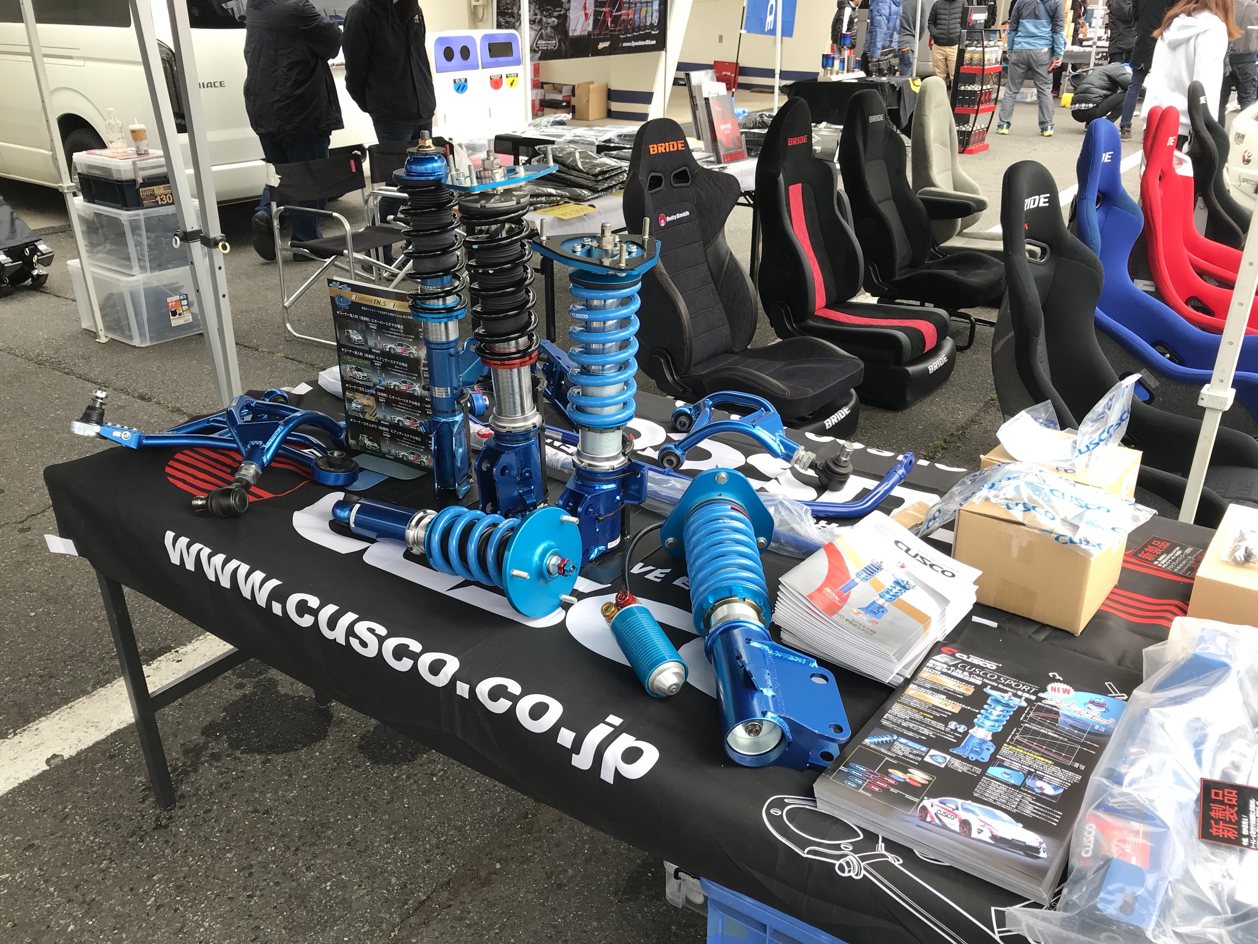 筑波サーキット、ハイパーミーティング始まりました!CUSCOパーツ&グッズの展示・特価販売やってます!レースの必需品、HANSとシンプソンハイブリットの試着も可能。ぜひCUSCOブースにお越しください!ターザン山田選手のNISSAN