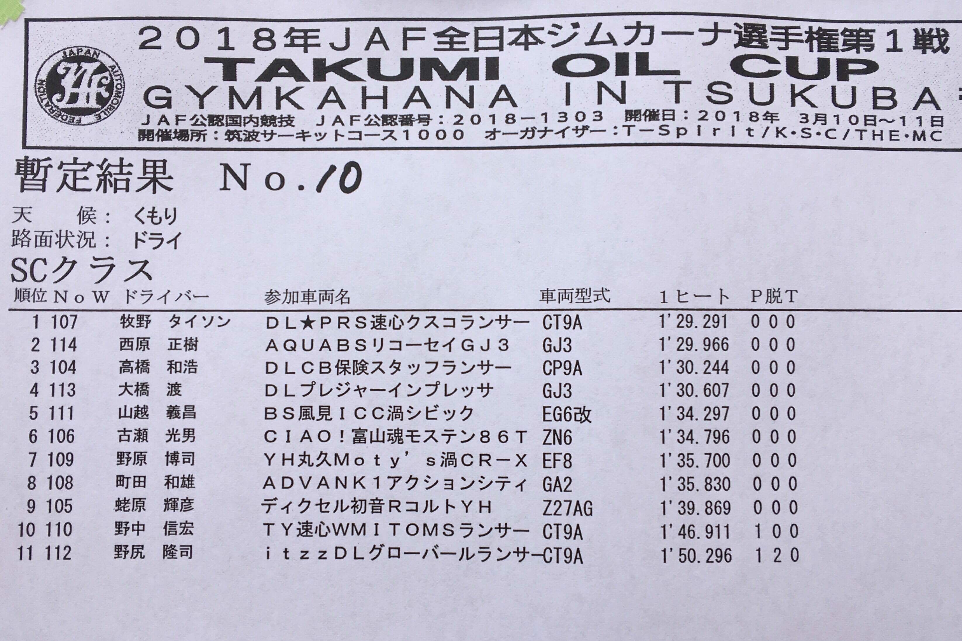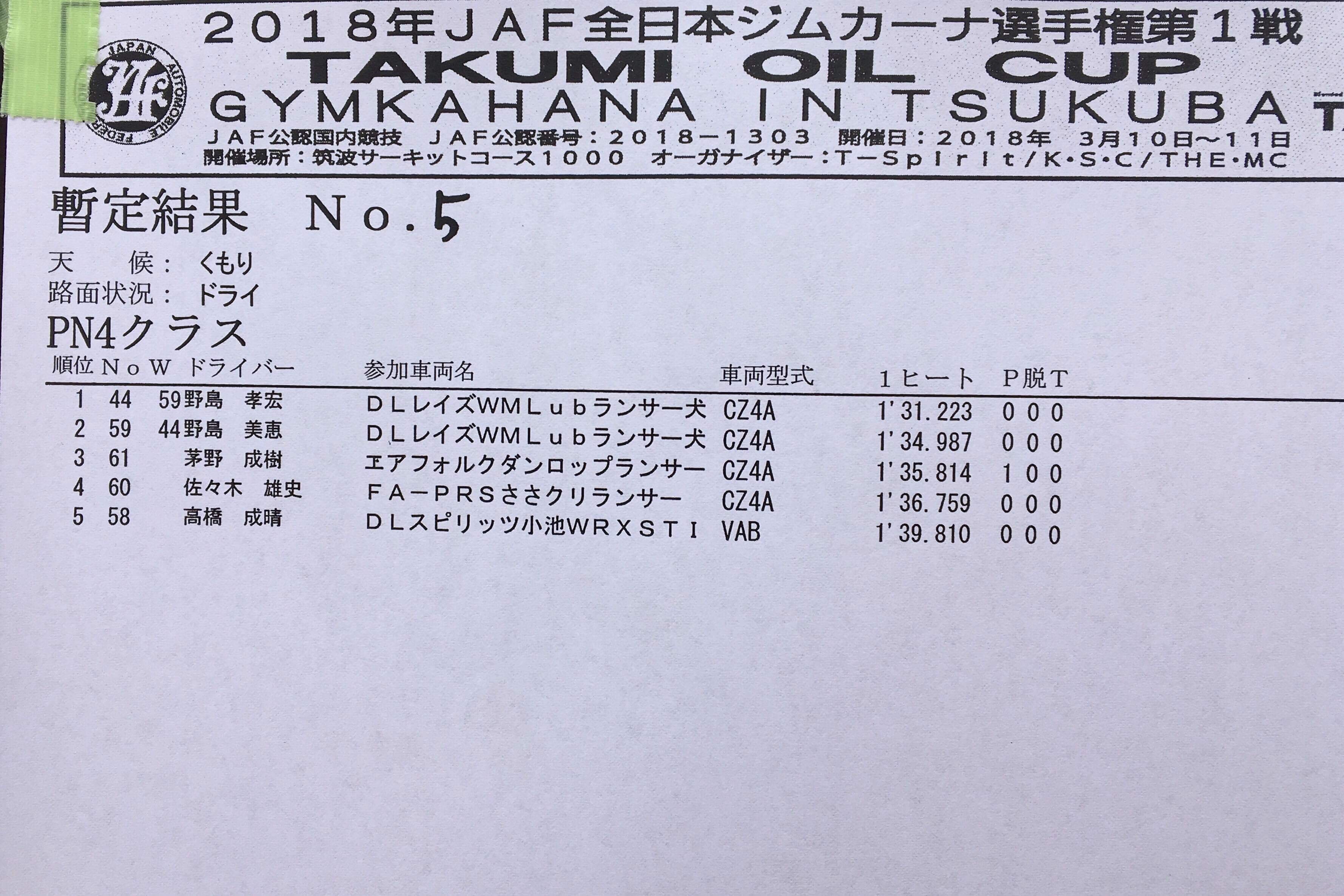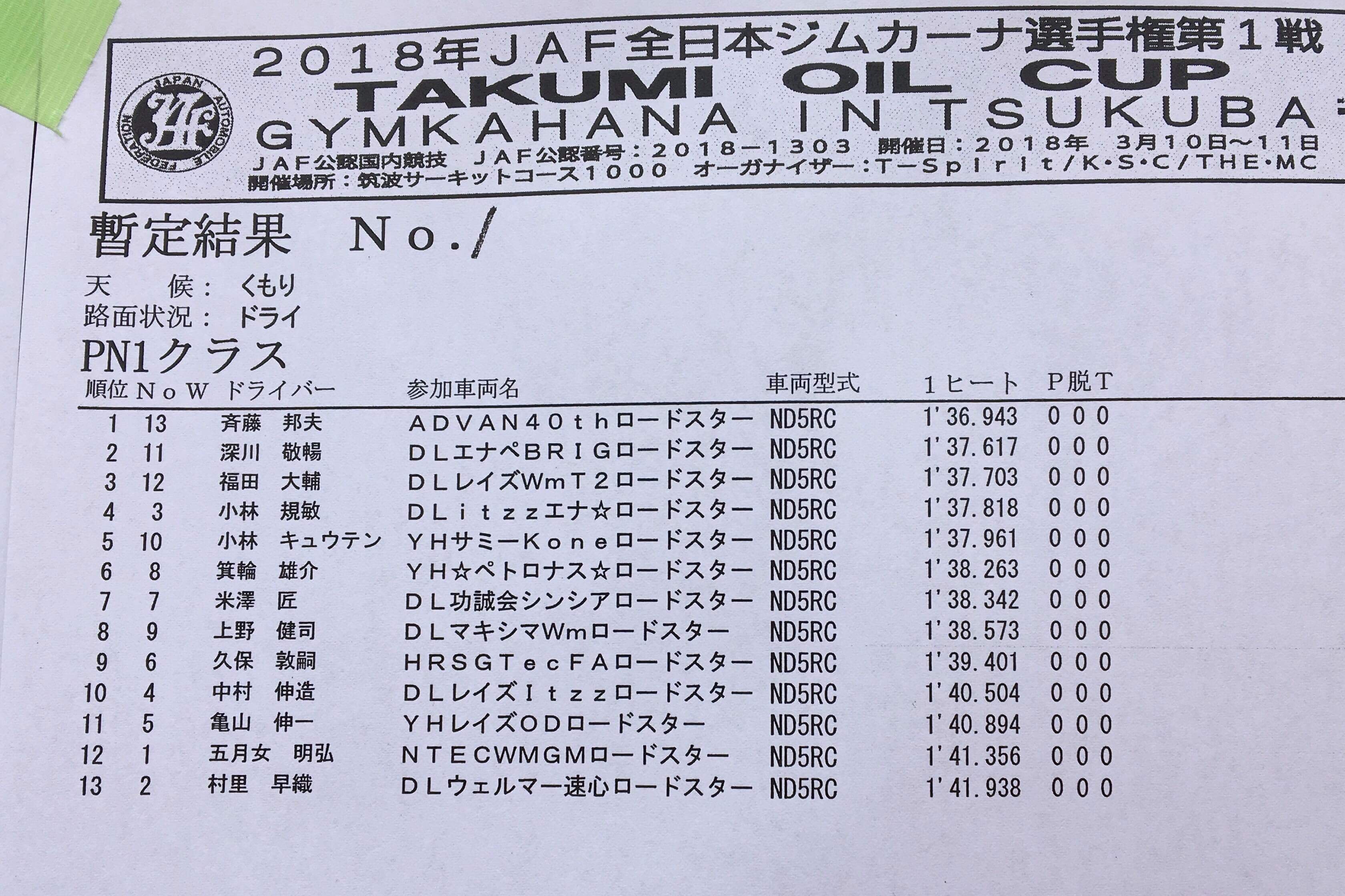 > 2018全日本ジムカーナ開幕戦 筑波 第1ヒート結果