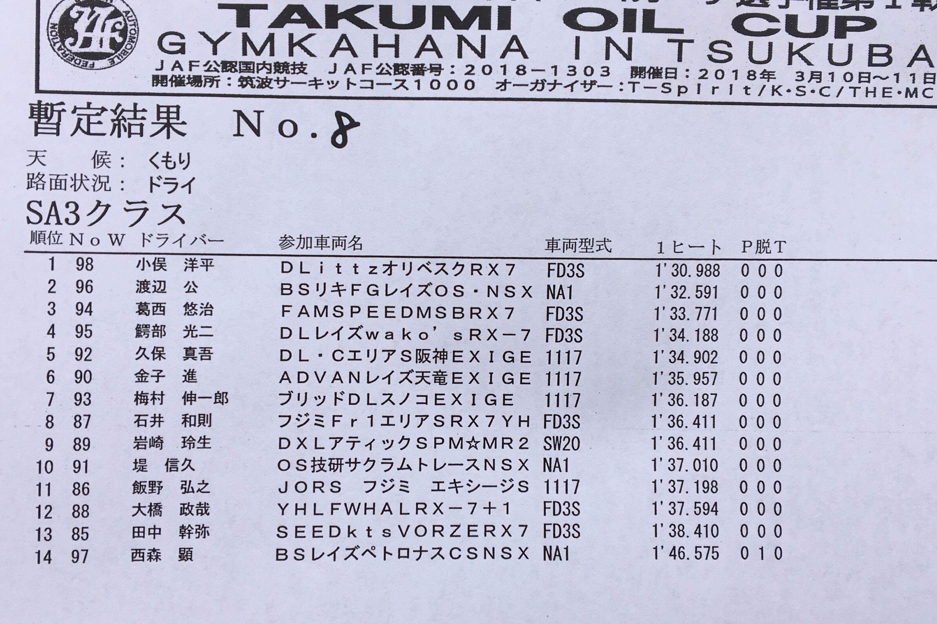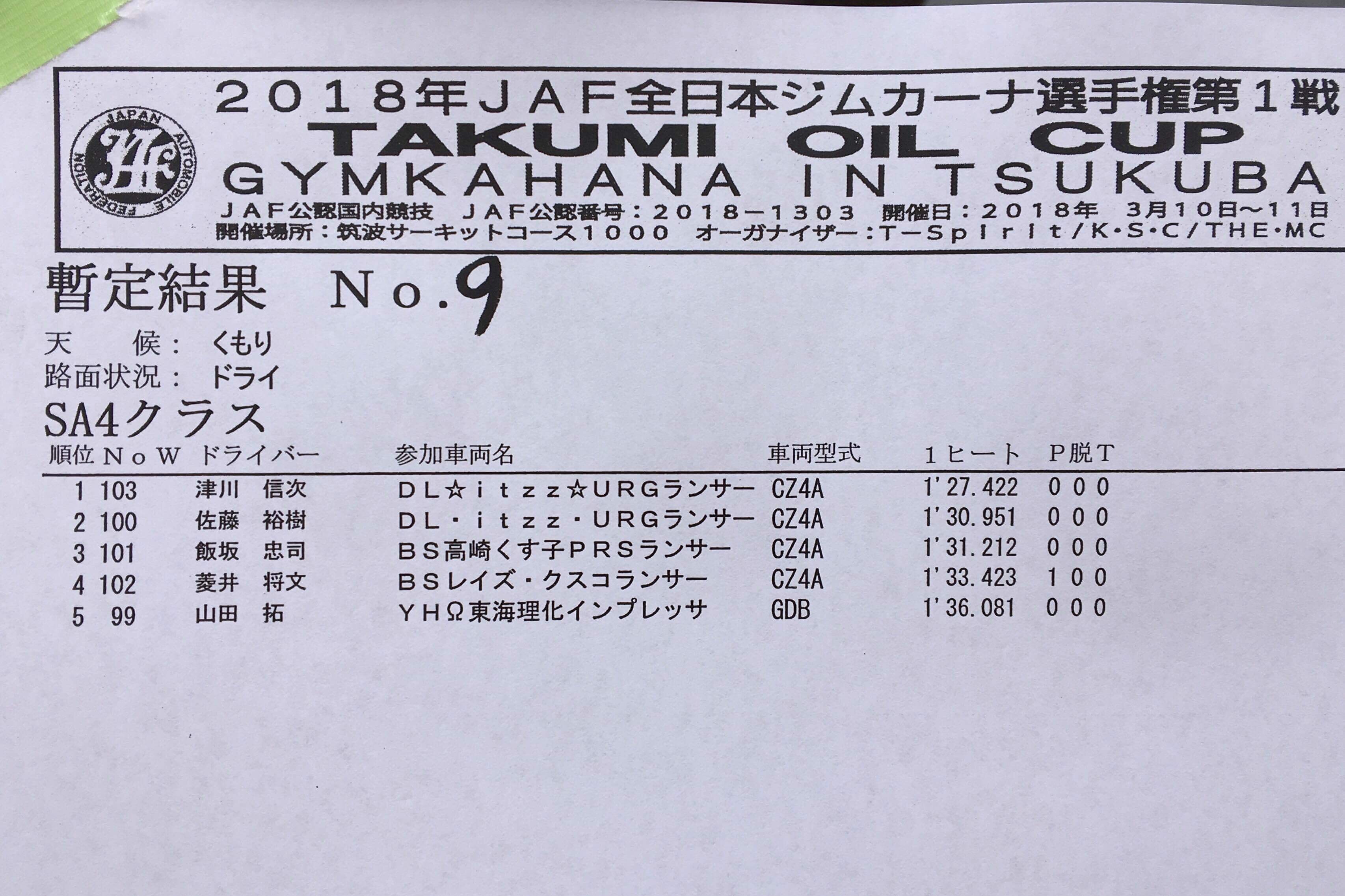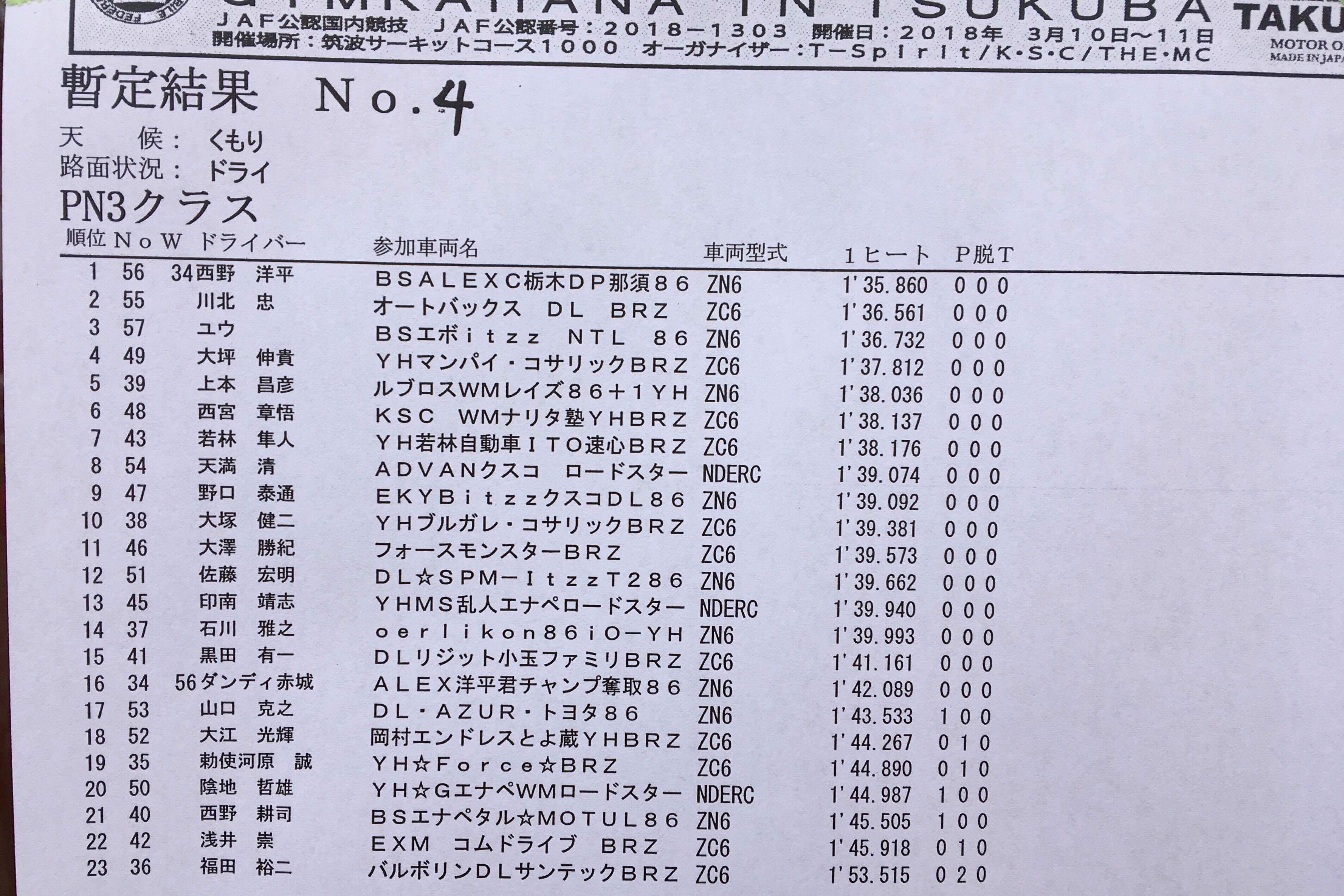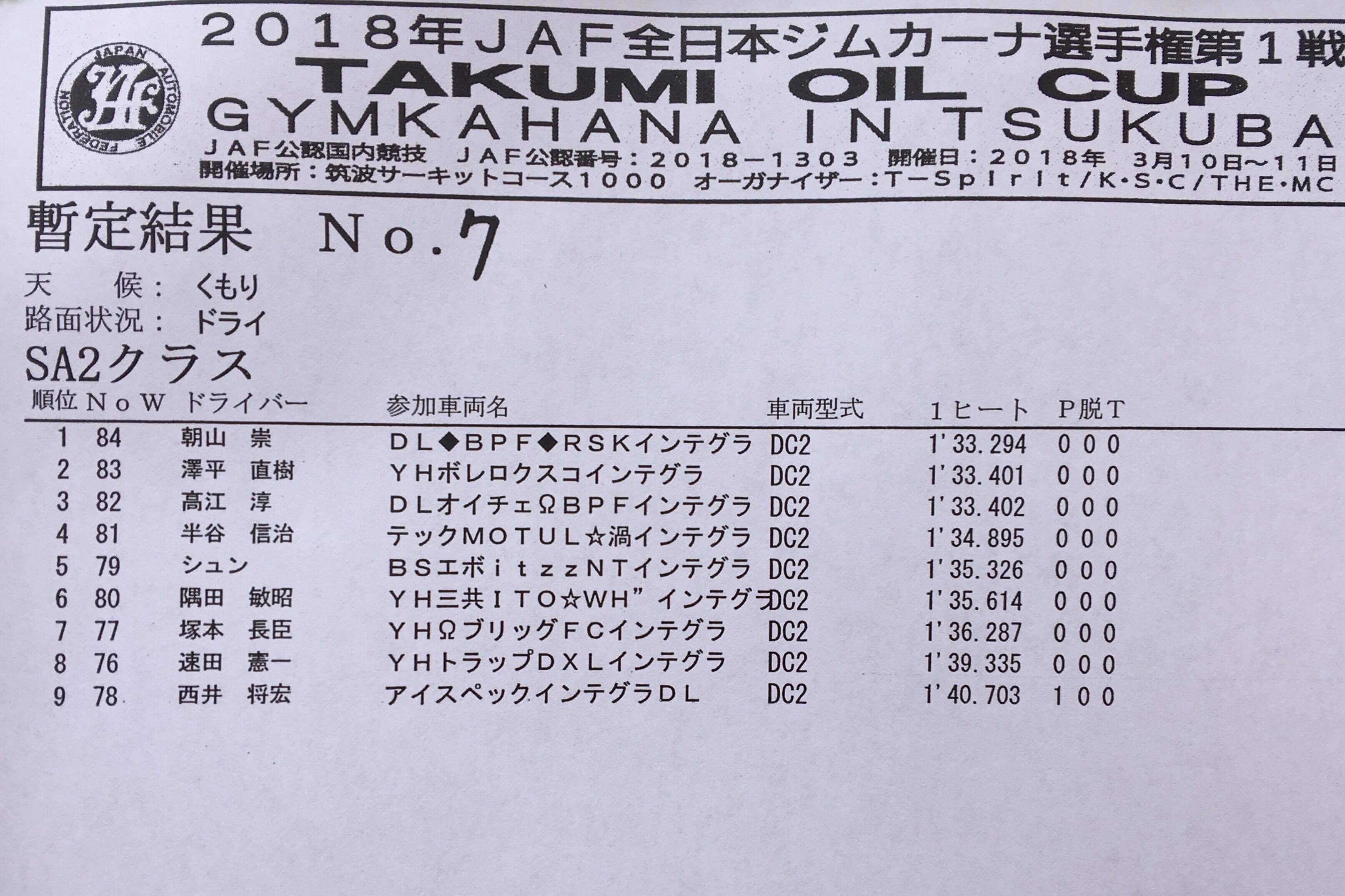 > 2018全日本ジムカーナ開幕戦 筑波 第1ヒート結果