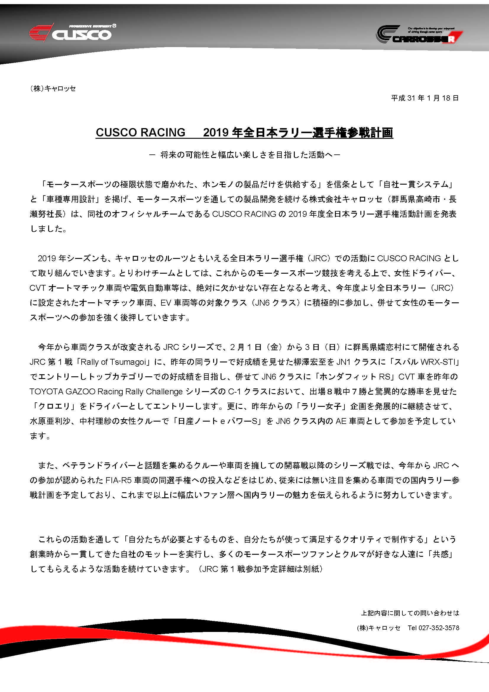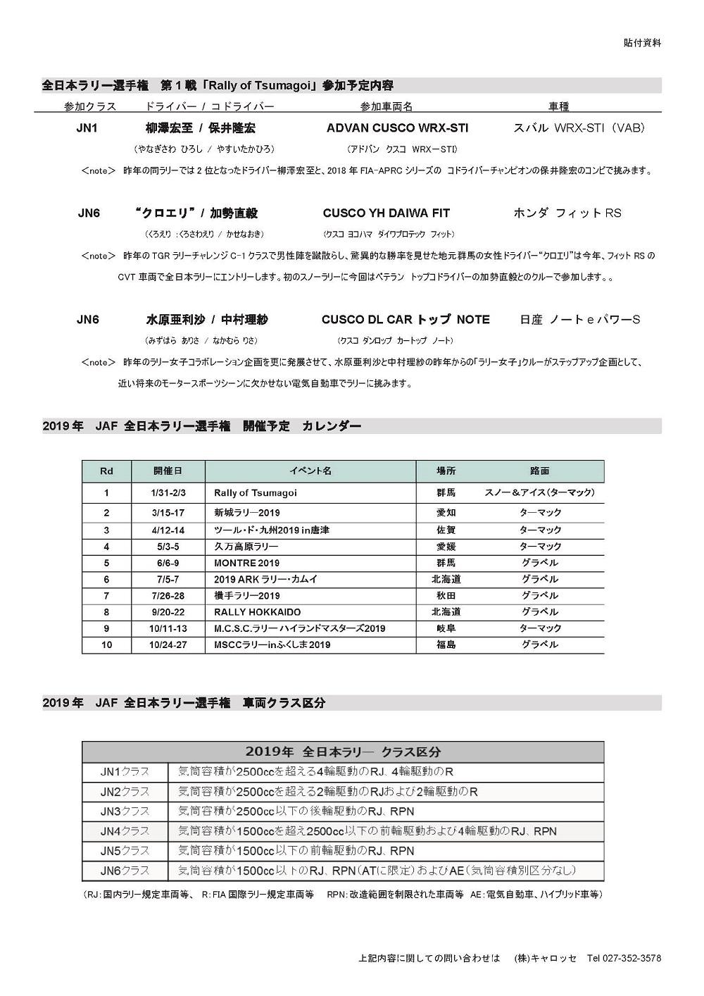 CUSCO RACING 2019年全日本ラリー選手権 参戦計画