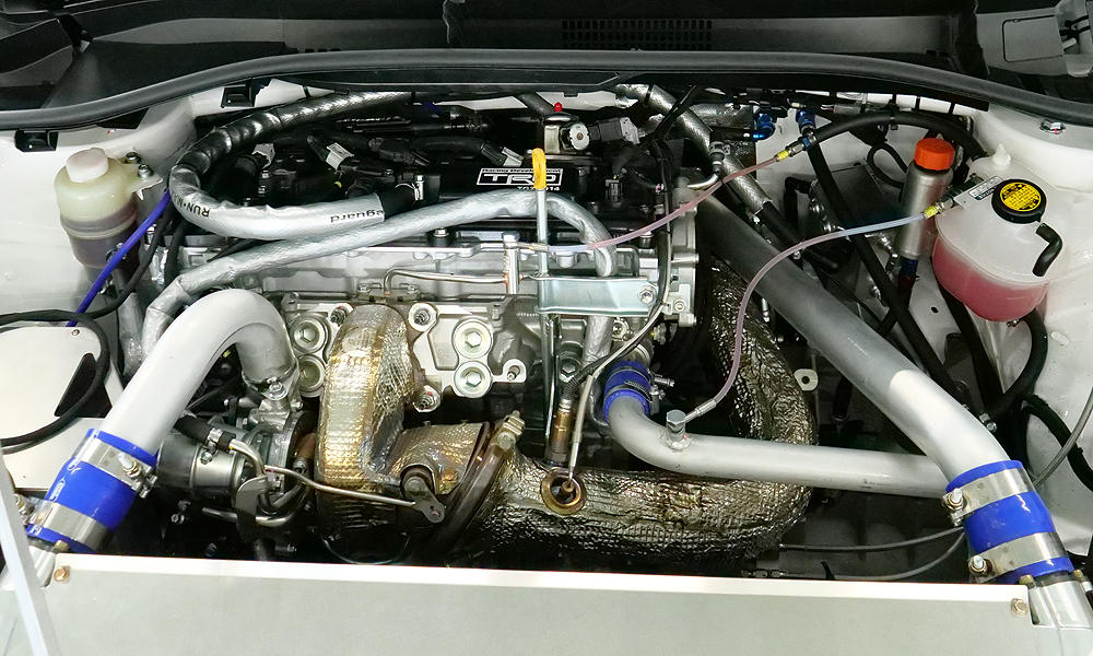 現在APRCとJSRに参戦中のYARIS 4WDから得られたデータを活かし、ペース車両のトヨタC-HRに合わせ設計段階から各部に改良を加えました。マシンサイズはAPRC・AP4規定の寸法内に収まっており、エンジンはYARIS同様TRD-8AR(2リッターターボ)を搭載。トランスミッションはDrenth製5速シーケンシャルを装備。また、サスペンション関係はC-HR用に全て新設計し、デファレンシャルなども専用設計・自社製作のパーツで構成されています。