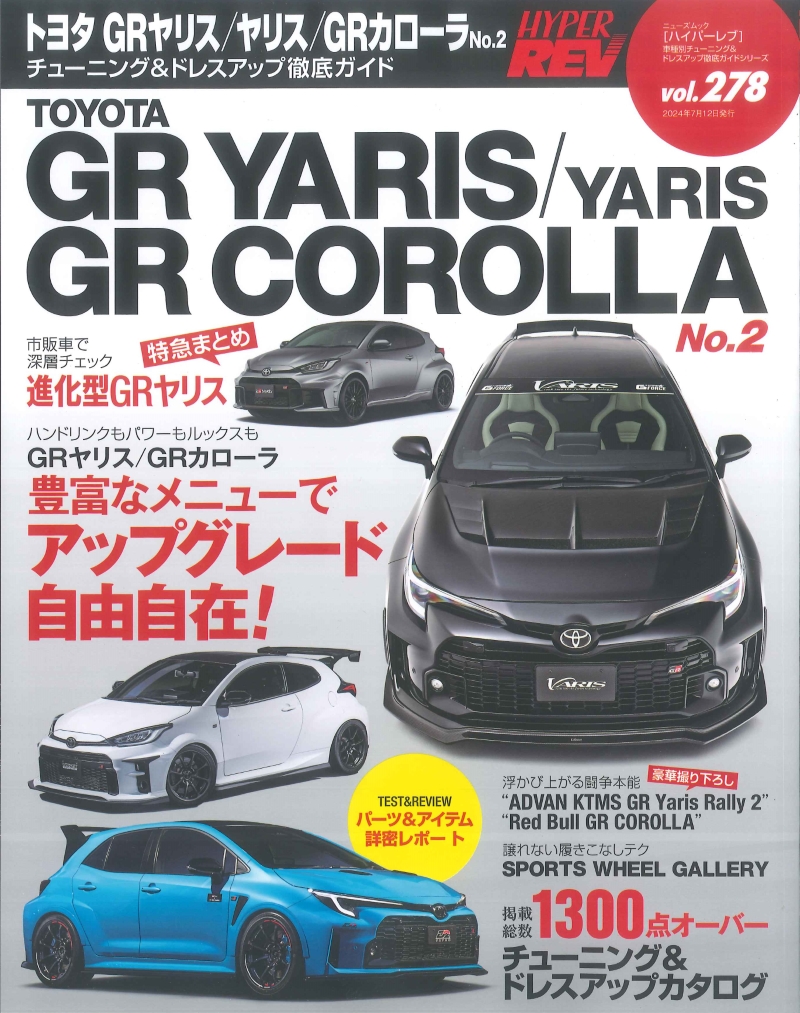 「GRヤリス/GRカローラ チューニング最前線に迫る!」記事で、車高調、スタビライザー、ボディビルドアップパーツ、LSD、ダイレクトイグニッションコイルなどの、GRヤリス/GRカローラ用クスコパーツと、装着デモカー/競技マシンが紹介されています(P34-35)。また、「闘う、ADVAN」記事では、ADVAN Racing GT BEYONDホイールを装着する、WRC王者カッレ ロバンペラ選手のフォーミュラドリフトジャパン参戦マシン、Red Bull GR COROLLAが紹介されています(P84-85)。書店などでお買い求めの上ぜひご覧ください。