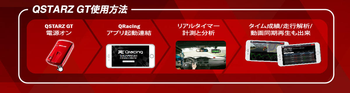 手軽に使えて高機能なQSTARZ GTで、本格的な走行データを可視化することで走りやタイムの向上に役立ててください。